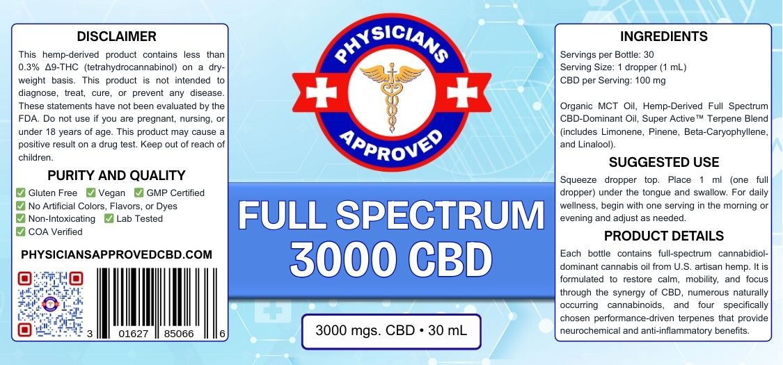 Designed for those who need a stronger full-spectrum option, this 3000 mg tincture delivers 100 mg of CBD per serving for powerful, reliable support. Crafted from nutrient-rich American hemp and blended with organic MCT oil, it offers a clean, concentrated approach to daily wellness.